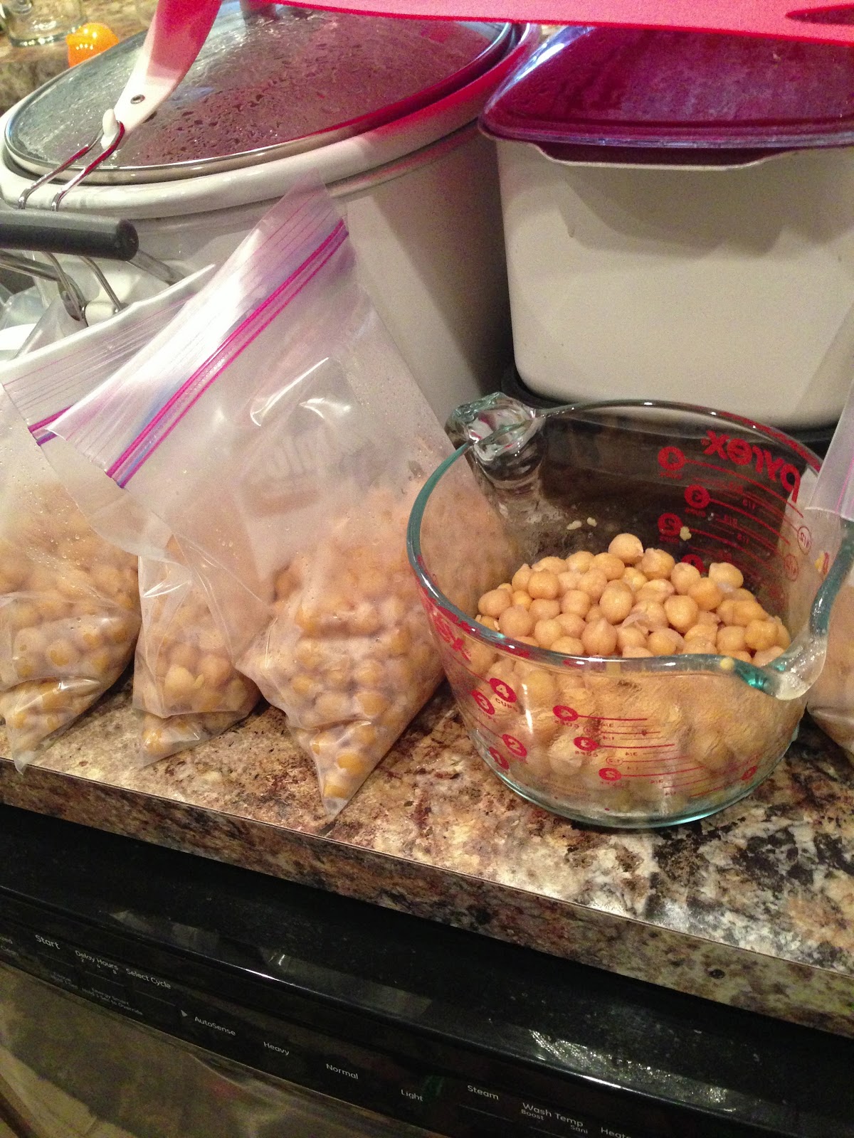 I used two small bags of dried peas. Once they cooled I sorted them into 15 ounce batches (which is how much would be in a can) in ziplock freezer bags. Now when I 'm feeling like hummus I can grab a bag from the freezer and whip up a yummy snack. The chickpeas themselves were very tasty. My daughter and I kept snacking on them while they cooled.